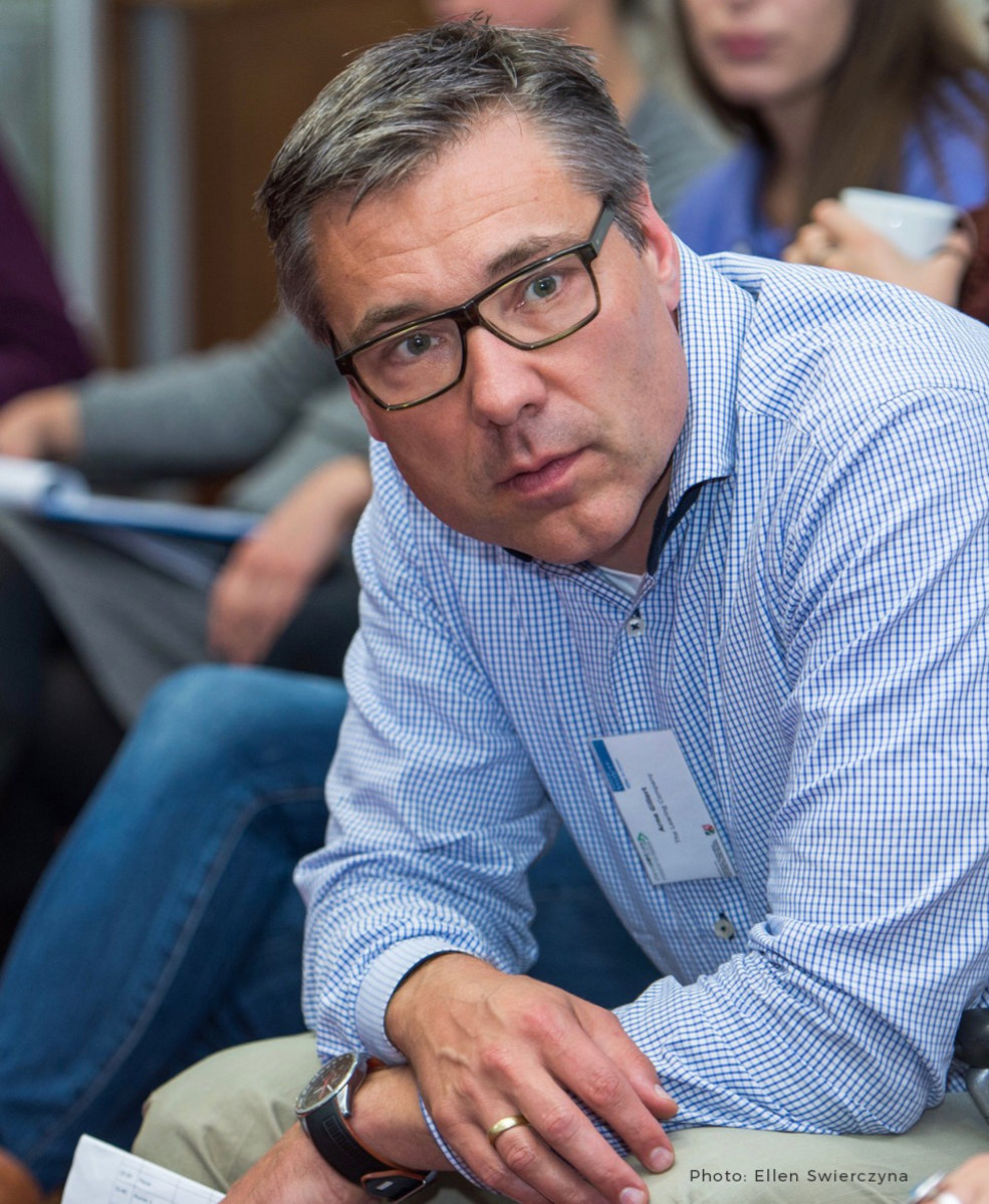 He support in a variety of roles. As Designer of social processes, to create spaces in which people can bring together their knowledge, interests and agendas. As Director (in the theatrical sense) in transformation processes, to translate strategy in a congruent and consistent way into new ways of working together. As Facilitator of large group events, to connect a whole system in a room and create relevant discourse and energy. As Coach to support professionals in increasing their impact.