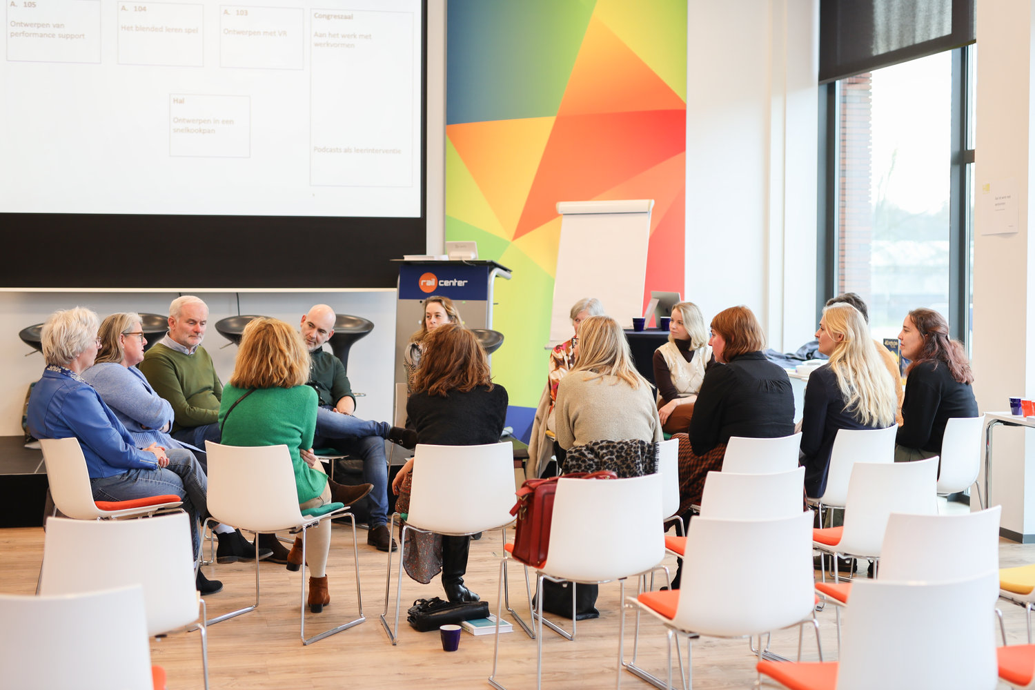 Daarna was het tijd voor actie. De gasten verdeelden zich over zes workshops die allen een duidelijke link hadden met het boek. Zo was er een workshop door Winston van Duijn over ontwerpen met Virtual Reality. Onder leiding van Joitske Hulsebosch kon je het blended leren spel spelen en al doende leren hoe je een concreet vraagstuk vertaalt naar een krachtig blended ontwerp. Niels Seresia liet de mensen in zijn workshop een aantal interactieve en inspirerende werkvormen zien, ervaren en uitvoeren. Marcel de Leeuwe en Wilma Baltes deelden hun ervaringen over het ontwerpen van performance support en de 'five moments of need' methodiek. In de ontwerpsnelkookpan workshop van Rachelle Handgraaf en Nynke de Jong maakten deelnemers in korte tijd een consistent ontwerp voor een L&S vraagstuk. En Josianne Savonije en Mariël Rondeel gaven een workshop over podcasts als leerinterventie. Met de workshopdeelnemers namen ze ter plekke in de mobiele studio een podcast op over ontwerpen, die je hier kunt beluisteren.